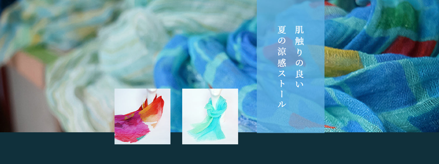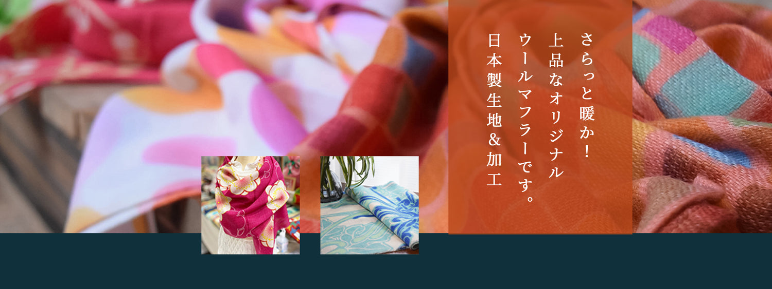 現在、ウールはデジタル友禅という手法で染めています。生地は浜松製、染めは私が京都で染めていますので、生地から製品まで100%日本製です。